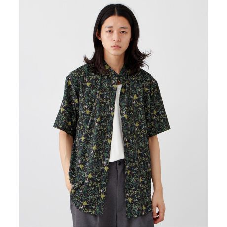 マルチパターン総柄 ジョーゼット バンドカラーショートスリーブシャツ