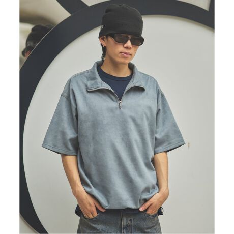 フェイク スエード ハーフ ジップ 半袖 T