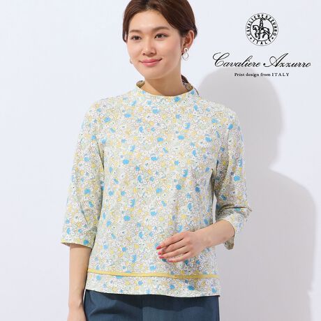 【洗える・日本製・一部店舗限定】カバリエレ・アズーロ花柄コットンTシャツ