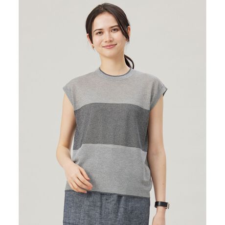 ブロッキングボーダーが目を惹くラメシアープルオーバー■デザイン太めのブロッキングボーダーがユニークなニットです。オリエンタルな雰囲気を纏った色合いや、上品なラメとシアー感が今年らしい印象です。同素材のカーディガン(KRW7GM0555)とアンサンブルで着て頂くのもおすすめです。イギリスの老舗ティーハウスFarrer’s(ファーラーズ)とのコラボレーションアイテムです。【Farrer’s】英国湖水地方で200年以上続くティーハウス。ホテル、レストランをはじめ現地の方々に愛される紅茶は、軟水向けにブレンドされているため、日本でも変わらない味が楽しめます。歴史ある建物でもあるティーハウスでは、美味しい英国菓子や紅茶を求め、連日お客様で賑わっています。■素材良質な光沢繊維素材を使用し、奥行きのある陰影を表現しています。光に当たるとチラチラと煌めくラメが特徴の素材です。爽やかでドライな印象と、トレンドのシアー感が盛夏にも適した素材です。■同素材アイテムカーディガン(KRW7GM0555)