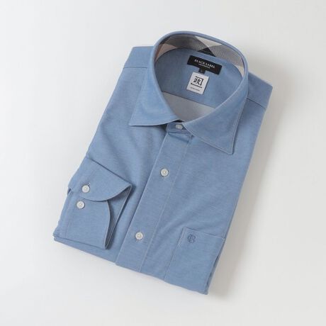 【機能性と抜群の着心地に優れたデニムライクセミワイドカラーシャツ】