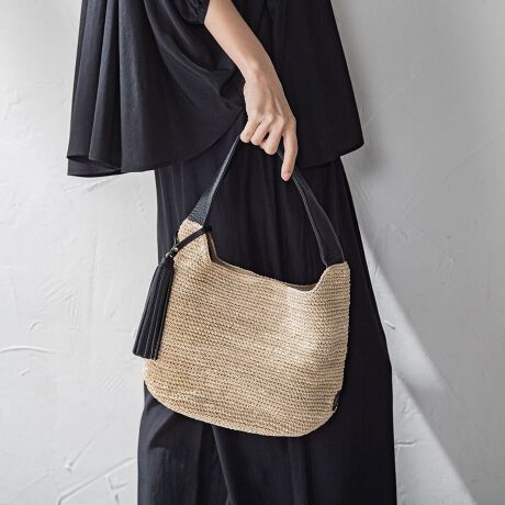 上質なアバカで編み上げたシンプルなワンショルダーカゴバッグ。