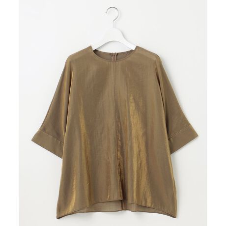 軽い質感とメタリックな光沢感が魅力のTブラウス■デザイン素材の表情感を生かしたビッグシルエットのTブラウスです。あえて身幅を大きくとることで肩から裾に向かってしなやかなドレープが生まれ、シャンブレーの奥行のあるカラーを際立たせています。メタリックな光沢感がありながらもシアーな素材なので、重くなりすぎず華やかで抜け感のある印象です。シンプルなテーパードパンツや、ストレートシルエットのスカートと合わせても、今までとは違う新鮮な印象になります。イギリスの老舗ティーハウスFarrer’s(ファーラーズ)とのコラボレーションアイテムです。【Farrer’s】英国湖水地方で200年以上続くティーハウス。ホテル、レストランをはじめ現地の方々に愛される紅茶は、軟水向けにブレンドされているため、日本でも変わらない味が楽しめます。歴史ある建物でもあるティーハウスでは、美味しい英国菓子や紅茶を求め、連日お客様で賑わっています。■素材ナイロンと綿糸の光沢の違いが生み出す、メタリックな光沢感が印象的なツイル素材です。綿とナイロンの色に差をつけることで、奥行きのあるシャンブレーの色合いが特徴です。程よくシアーな素材で、しなやかで薄く軽い質感と、綿のナチュラルで肌離れの良いタッチもポイントです。■同素材アイテムスカート(SKWRGM0513)