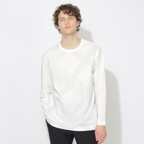 フロントにクレストブリッジチェック柄をシャドーであしらったカットソー。程良いコントラストでチェック柄を表現する事で着回しやすさもプラス。