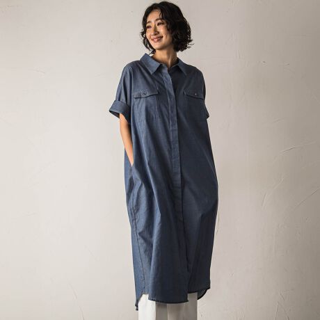 夏らしい薄手ダンガリー素材のシャツワンピース。