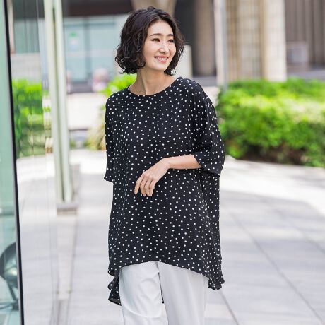 関連ワード:la.f… ラ エフ レディース 新作 大人コーデ シンプル フォーマル モード マニッシュ 2025春夏 2025SS 春夏 春物 春服 ポリエステル ブラウス 半袖 モノトーン ドット