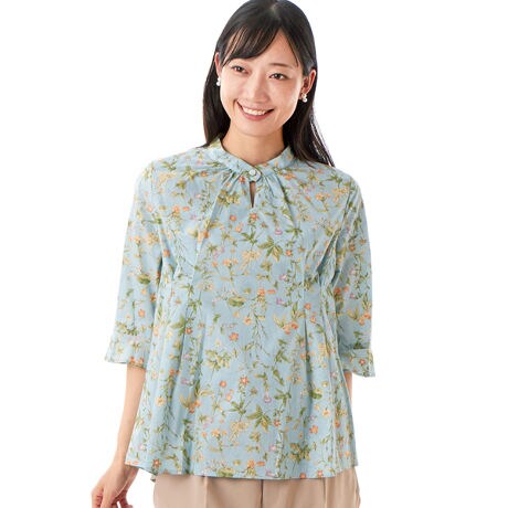 綿プリント フレアー袖チュニック