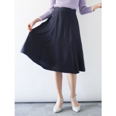 微光沢なドットとカットジャガードのポコポコ感が可愛らしく、新鮮なドットが楽しめるスカート。