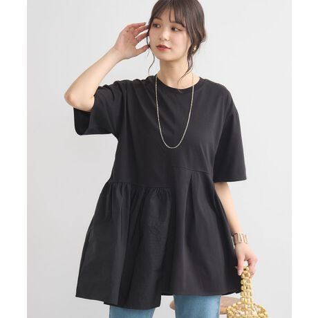 <p>裾にタフタ調生地をドッキングしたハイブリットなカットプルオーバー。アシンメトリーに切り替えたフレアシルエットが目を惹くデザインです。ゆったりとしたオーバーシルエットのリラクシーな着用感も魅力的。シンプルなワンカラーながらも一枚で印象的な着こなしが決まるおすすめのアイテムです。暑いシーズンにも快適に着られる接触冷感、吸水速乾の素材を使用。
