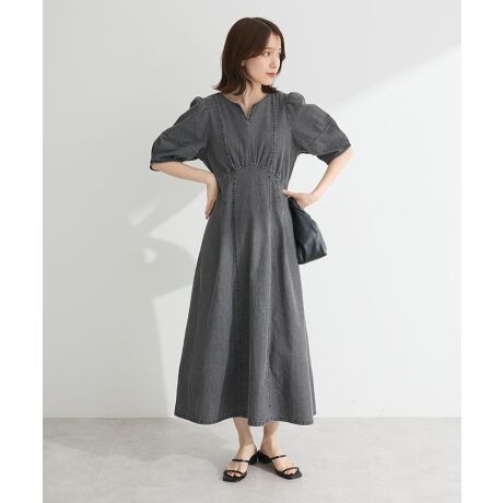 立体感のあるボリューム袖がポイントのデニムワンピース。胸下の切替えラインや、縦に入った切り替えパターンで脚長効果を叶えるデザインです。豊かに広がるフレアなシルエットで、女性らしい着こなしを後押し。カジュアルな雰囲気ながら、レディライクなディテールが詰まったこだわりの1枚です。透け感[なし]