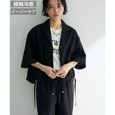 さらりとしたリネンタッチの生地で仕立てたシャツジャケット。コンパクト丈のボックスシルエットに、開襟デザインが抜け感ある着こなしを後押しします。接触冷感素材で夏の暑い日でも着心地良く、イージーケア仕様なのも嬉しいポイント。裾スピンドルでお好みのシルエットアレンジができ、幅広いスタイリングで活躍してくれるおすすめのアイテムです。