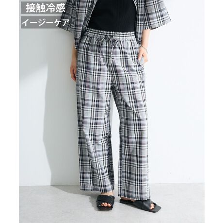 ゆったりシルエットがリラクシーな穿き心地を叶えるワイドパンツ。暑い日にもさらりと快適な接触冷感性のある綿麻混素材で仕立てました。洗濯しても縮みやシワ、毛玉が出来ずらいイージーケアなのも嬉しいポイント。ベーシックカラーに、コーディネートの主役にぴったりなチェック柄を含めた4色展開で、幅広いアイテムと合わせて楽しんでいただけます。透け感[なし]