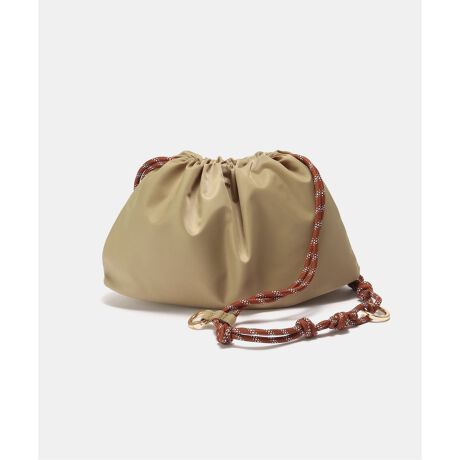 巾着紐のストッパーには丸カラビナを使うことで、幾通りものバリエーションの持ち方ができ、女性らしいアクセントもプラスしてくれます。