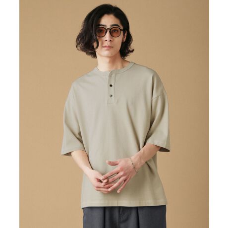 40/2モスステッチヘンリーネックオーバーサイズ半袖Tシャツ