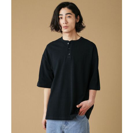 40/2 モスステッチヘンリーネックオーバーサイズ半袖Tシャツ