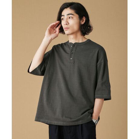 40/2 モスステッチヘンリーネックオーバーサイズ半袖Tシャツ