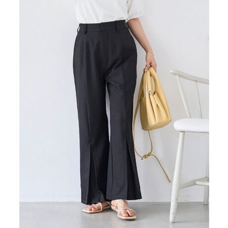 膝下に入ったプリーツが縦ラインを強調し、すらっと美脚見えを叶えてくれるフレアパンツ。