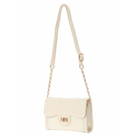 キルトフラップと異素材使いのボディがアクセントをプラスするショルダーバッグ。