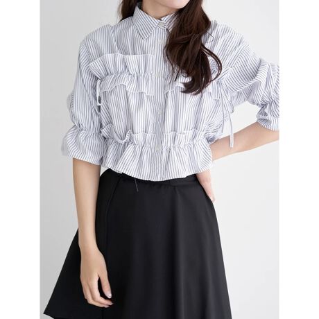 フリルのボリューム感がスタイリングを華やかに彩るシャツ。