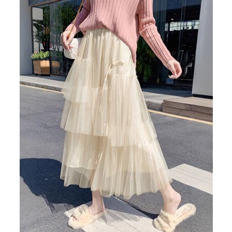 軽やかでふんわりとしたシルエットが魅力的なティアードロングスカート。