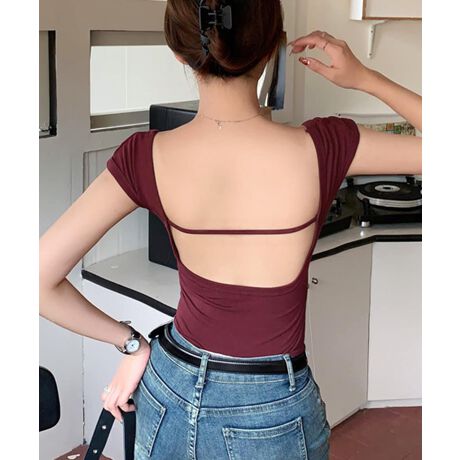 背中の開いたデザインが抜け感をプラスし、ヘルシーな印象に。
