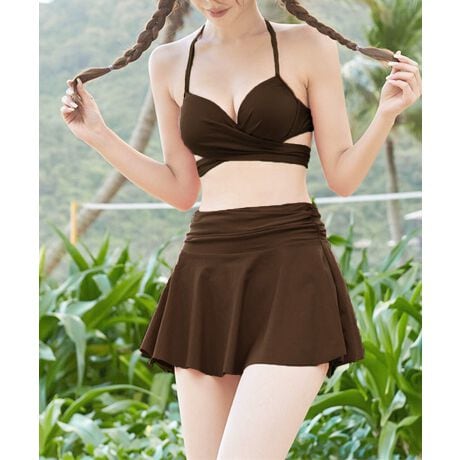 トレンド感あふれるクロスビキニとフレアスカートの3点セット