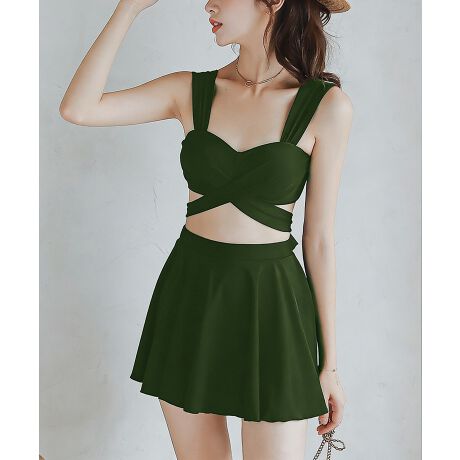 目を惹くセクシーなクロスデザインの水着3点セット。