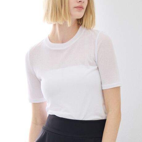 大人の女性がさりげなくスタイリングに取り入れられる適度な透け感と繊細な素材の表情が、カジュアルなカットソーながら品のあるアイテム。