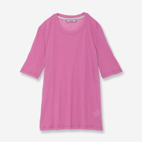 大人の女性がさりげなくスタイリングに取り入れられる適度な透け感と繊細な素材の表情が、カジュアルなカットソーながら品のあるアイテム。
