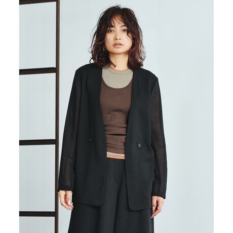 ■デザインスッキリとしたVあきのノーカラージャケットです。シャツ感覚で気軽に羽織って頂ける軽いジャケットに仕上げています。同シリーズのパンツに合わせやすく軽く仕上げています。