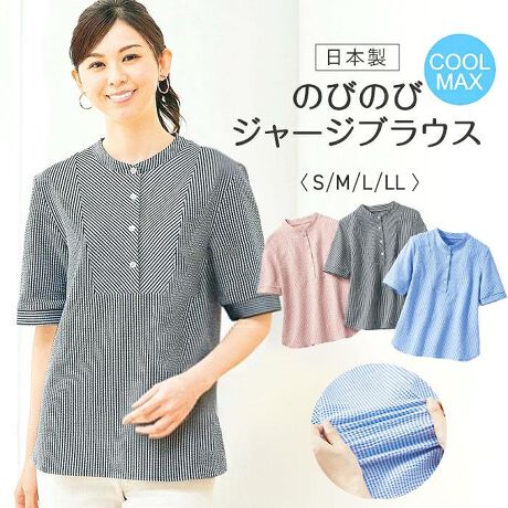 【商品名】 日本製<COOLMAX>のびのびジャージブラウス