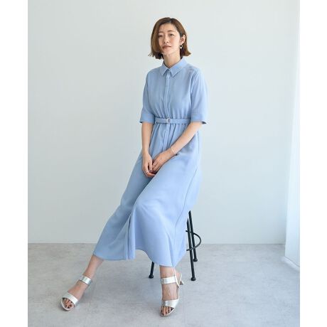 すっきりとした比翼仕立ての上品なシャツワンピース。襟元の煌めくメタルボタンがアクセントになっています。ウエストゴム仕様でリラクシーに着用でき、同素材のベルトがスタイルアップを叶えてくれます。裾に向かって緩やかに広がるAラインシルエットが女性らしさを引き立て、一枚できれいめなスタイリングが決まるおすすめのアイテムです。透け感[ややあり]