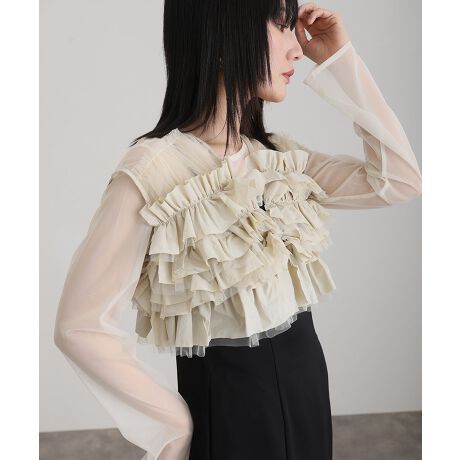 繊細なフリルの重なりが立体感を生み、目を惹く華やかなデザインに。