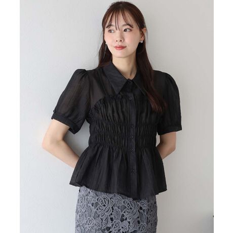シャーリングで表現したコルセットデザインのビスチェが