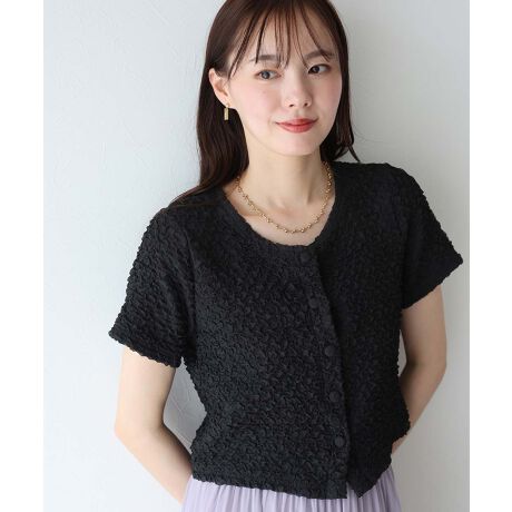 立体感のあるふくれジャガード素材で仕上げた、華やかさと軽やかさを備えた一枚。