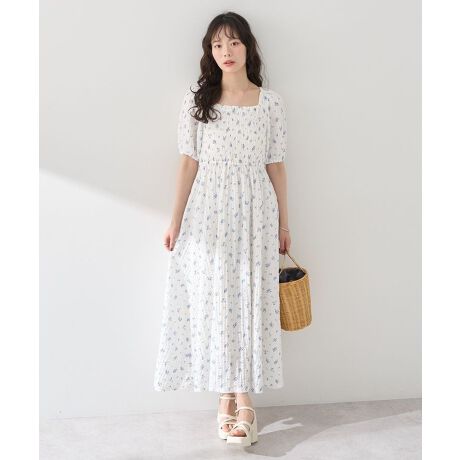 1枚でフェミニンなコーディネートに決まるロングワンピース。見頃部分のシャーリングディテールやバックリボンが差をつける魅力的なデザインです。前後スクエアネックで顔まわりをすっきりとした印象に。ポコポコとした表面感のある爽やかな素材が、より夏のシーズンムードを高めてくれる今季おすすめのアイテムです。透け感[なし]