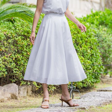 裾に向かって広がる上品なサーキュラーシルエットにこだわった1着。