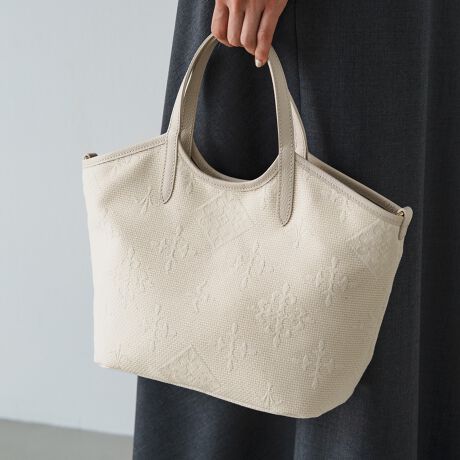 シンプルながらも存在感のあるデザインの刺子バッグ。