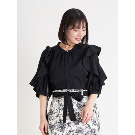 ・袖のラッフルフリルデザインがコーデに甘さをプラス?