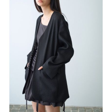 オーバーサイズですが、ノーカラーのデザインですっきりとした印象でお召しいただけます。