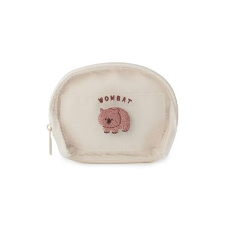 ポーチ前面には動物の刺繍が入ったメッシュ生地を採用。