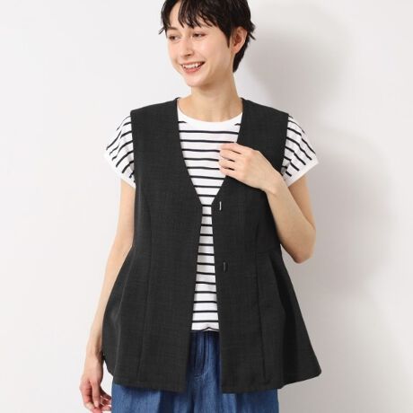 腰周りをカバーしてくれるペプラムシルエットのジレ。