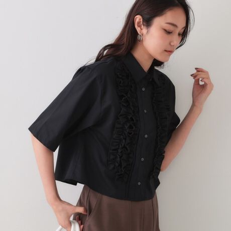 フリルが 可愛く 丈も短めなので マニッシュなワイドパンツなど合わせると甘辛コーデで バランスが良いです スカートも相性がいいと思います