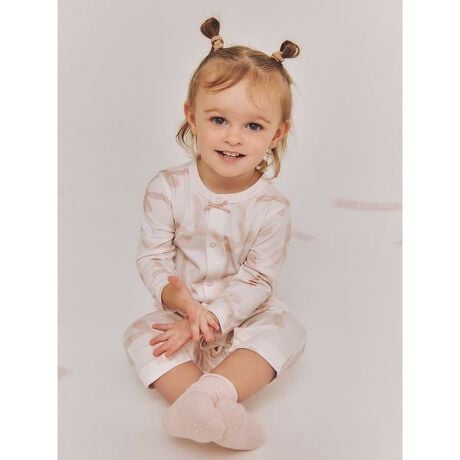 gelato piqueで過去に人気だったアーカイブ柄を厳選してピックアップ。さらに新作のアニバーサリー柄を合わせた、全10種類のプリント柄からお選びいただける新たな定番シリーズが誕生しました。ロングシーズンでご使用いただける、スナップボタン付きの長袖ロンパース。柔らかなフライス地を使用したベーシックな形なので、柄違いで揃えても重宝します。胸下の位置には、ワンポイントで発泡プリントのロゴ入り。柄の雰囲気に合わせてパイピングや飾りステッチ、リボンを加えるなど、1柄ごとにディテールを差別化しているのもポイントです。色は10色からお選びいただけます。同シリーズのBABYスタイとコーディネートしたり、出産祝いのギフトにもぴったりな1枚です。同柄で母子手帳ケースのご用意もございます。