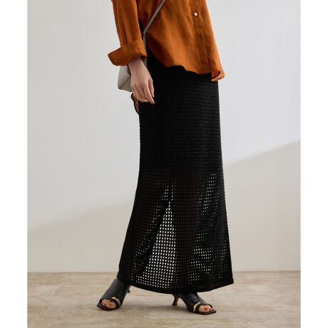 ヒップからまっすぐにラインをとったニットスカート