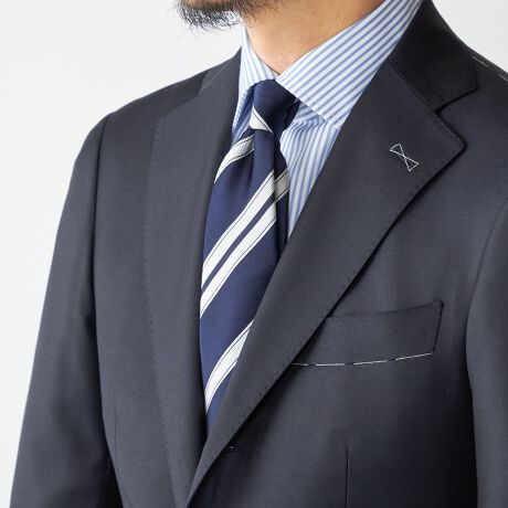 ネイビーのネクタイは苦手な合わせが少なく、お使いのシャツやスーツに合わせていただきやすい1本です。
