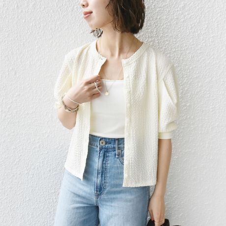 ポコポコとした素材が可愛い夏にぴったりのカットソーカーディガン。