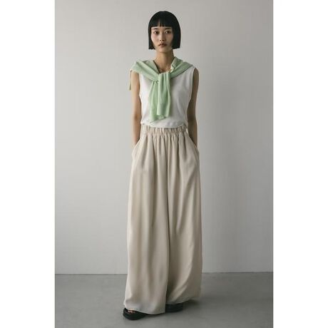 [型番:500ISS31-1281]IVO:モデル身長166cm(Mサイズ着用)BRN,GRY:モデル身長165cm(Mサイズ着用)膨らみ感のあるサテンを裏使いにしたリラックスワイドパンツ。素材の落ち感とふくらみが美しいラインを作ります。ウエストゴム仕様、ウエスト内側には調整可能な紐付き。透け感なし、ストレッチなし。【お手入れ方法】マシンウォッシュ可