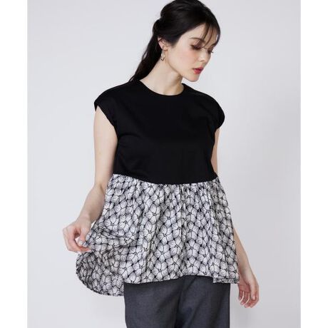 《大きいサイズ》刺繍レースドッキングカットソー