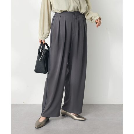 *落ち感のある素材に、タックデザインでたっぷりと幅をとったおしゃれなワイドシルエットパンツ。・昨年も好評だったアイテムに、使い勝手の良いブラックが加わりました。